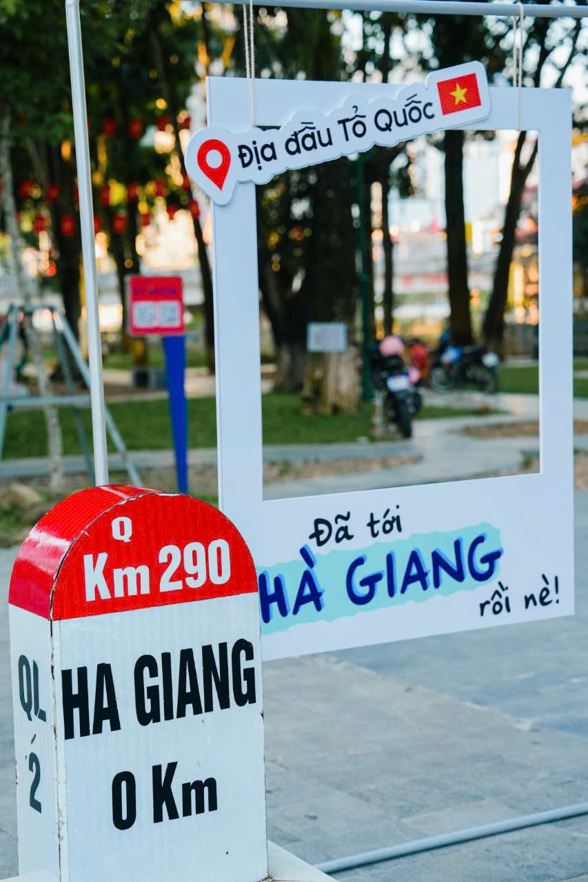 14h30: Đến thành phố Hà Giang, chụp hình kỷ niệm tại Km0 của Hà Giang. Điểm giao nhau của QL2,